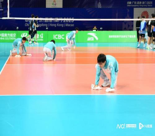 南都讯 起跳、拦网、扣杀!日前,十五运会排球项目男子20岁以下组(以下简称“U20男排”)正在华南农业大学体育馆火热进行。比赛现场,每当哨声响起,数道蓝色的身影就会举手示意,随即手持抹布冲入场内迅速擦干地面的汗渍。他们,就是“快擦手”志愿者。