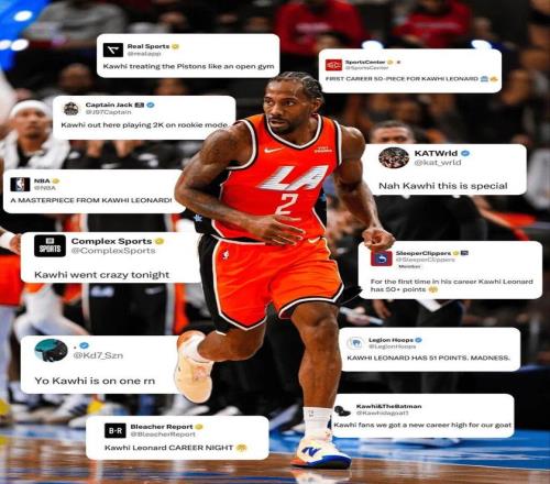 而坎宁安和杜伦的发挥帮助活塞轰出一波10-0的冲击波将分差迫近至个位数,伦纳德在本节爆砍26分生涯首次50+的表现帮助快船大比分领先进入末节,三节结束,快船92-69活塞。